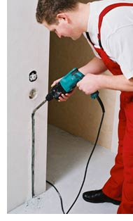 2. В стене прорубить штробу сечением 20 х 20 мм. Она необходима для укладки датчика температуры и холодного соединительного провода и для настенной коробки для терморегулятора.
